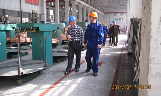 2014年3月17日,江蘇華鵬變壓器有限公司來我公司蒞臨指導(dǎo)。對方企業(yè)代表跟隨我公司副總王金華,參觀了公司生產(chǎn)部的上引工段與設(shè)備工段,王金華對對方企業(yè)代表提出的問題進行了相關(guān)解答。