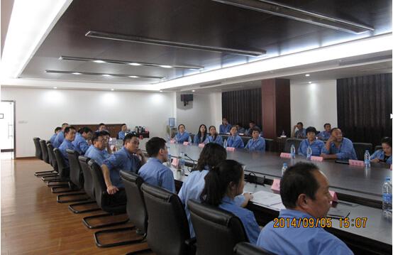 2014年9月5日,公司在新行政樓四樓綜合報告廳舉行年度第三次職工大會。公司各部門員工悉數(shù)列席,由總辦顧曉蕾主持會議。