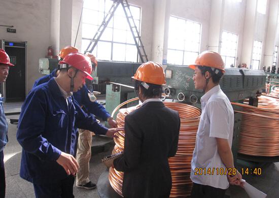 2014年10月28日,南車集團株洲時代曾總帶領其考察團隊再次來到紅杉銅業(yè),對6月份檢查項目進行復審和合作談判。在總經(jīng)理李棟梁、副總王金華的陪同與介紹中,參觀了公司生產(chǎn)部各工段現(xiàn)場,對方對我司生產(chǎn)現(xiàn)場大幅度改善的現(xiàn)狀給予了高度贊揚與肯定。